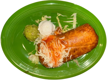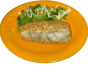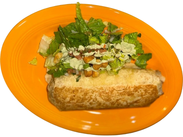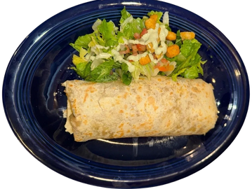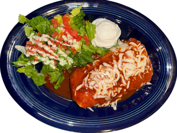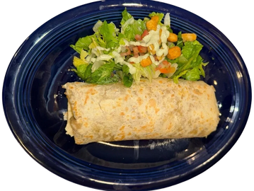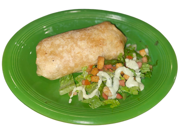 ALL BURRITOS ARE SERVED WITH SALAD AND HOUSE DRESSING DRIZZLED ON TOP.