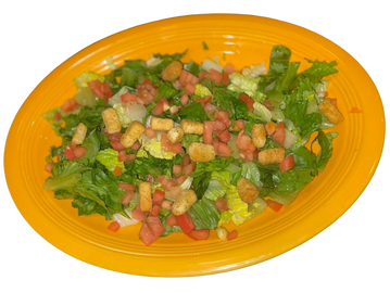 Romaine lettuce, tomato, and tortilla strips.