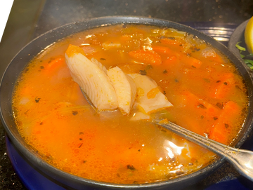 Bagre fish soup with vegetables