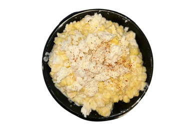 Corn dish mixed with mayonnaise, cheese, and butter.